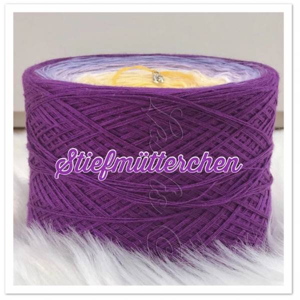 Farbverlaufswolle mit dem Namen Stiefmütterchen bestehend aus verschiedenen Farben die liebevoll ausgewählt und zusammengewickelt wurden damit Sie etwas schönes daraus häkeln oder stricken können.